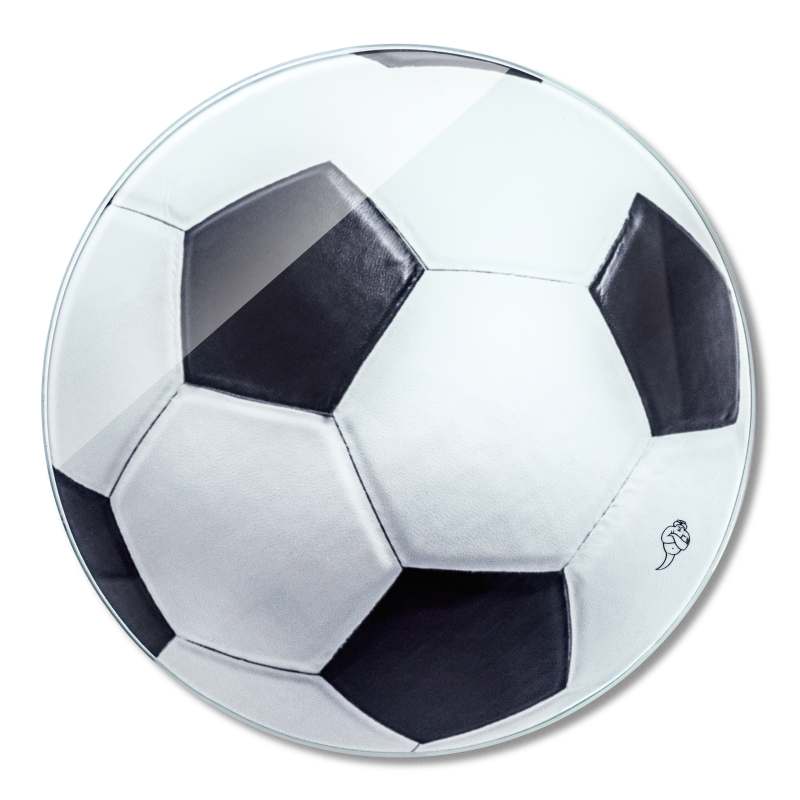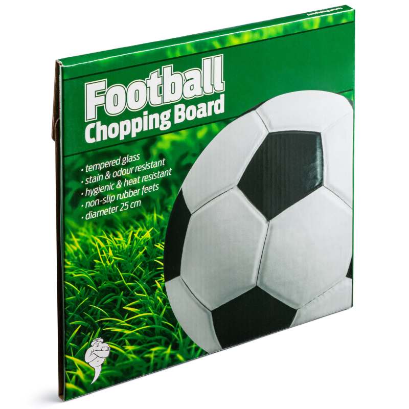 szklana deska do krojenia o kształcie i z nadrukiem piłki nożnej