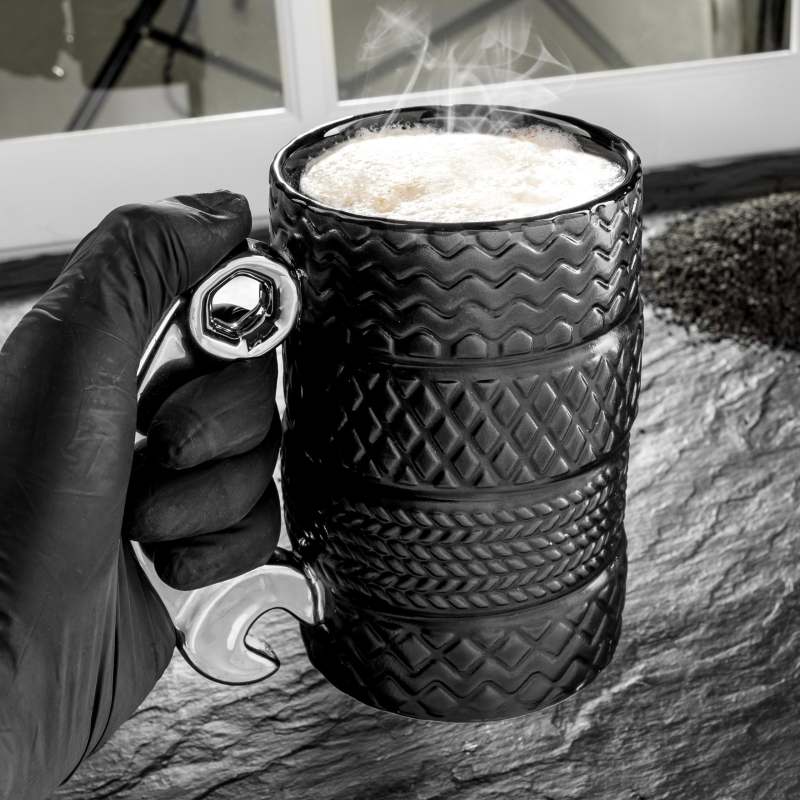 Jeśli pragniesz uczynić swój poranny napój nieco bardziej ekscytującym, ten kubek w kształcie opony samochodowej z kluczem jako rączką jest idealnym rozwiązaniem. W końcu, jak powiedziałbym – to kubek, który nie tylko przeniesie cię na wyższy bieg, ale także sprawi, że poczujesz wibracje prawdziwego motoryzacyjnego szaleństwa.