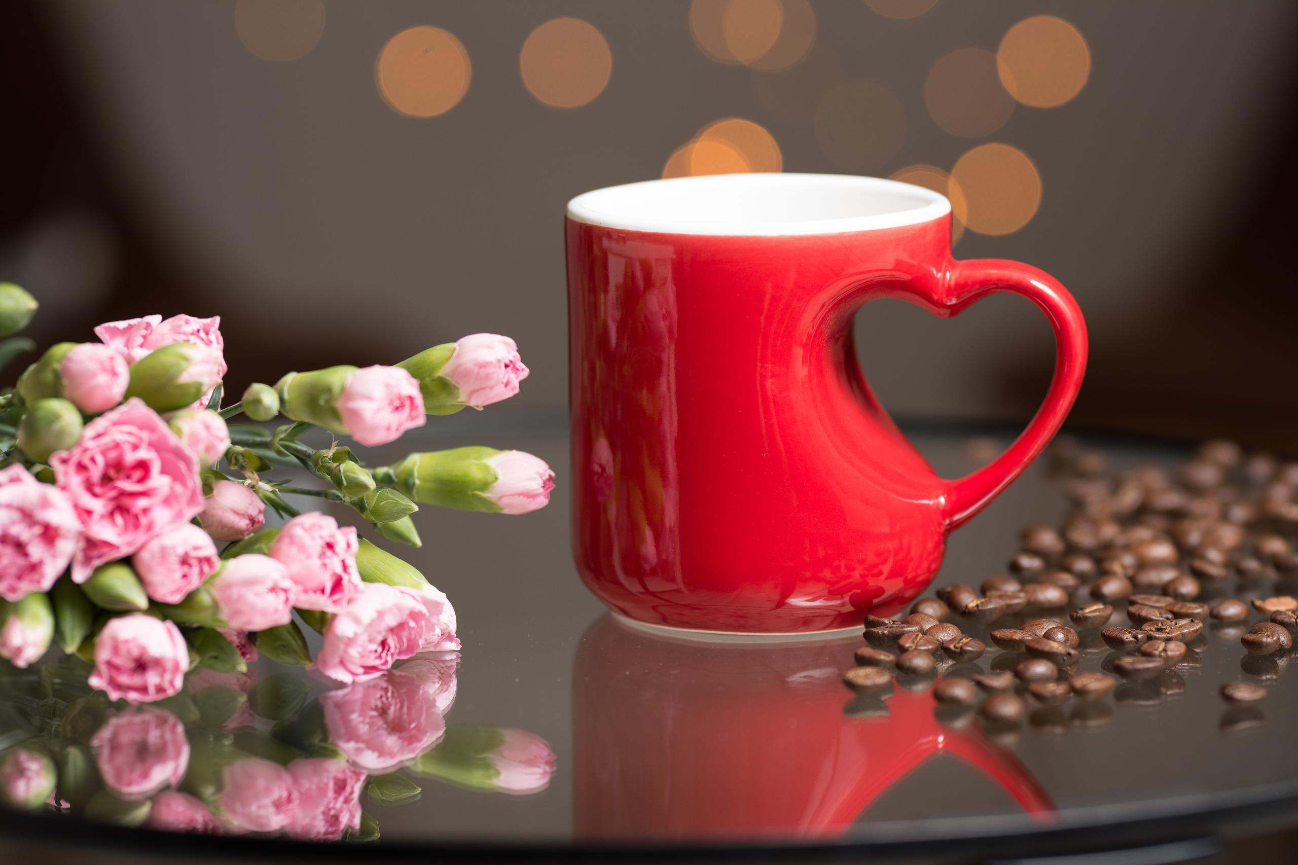 - czerwony kubek z uchwytem w kształcie serca ☕❤️