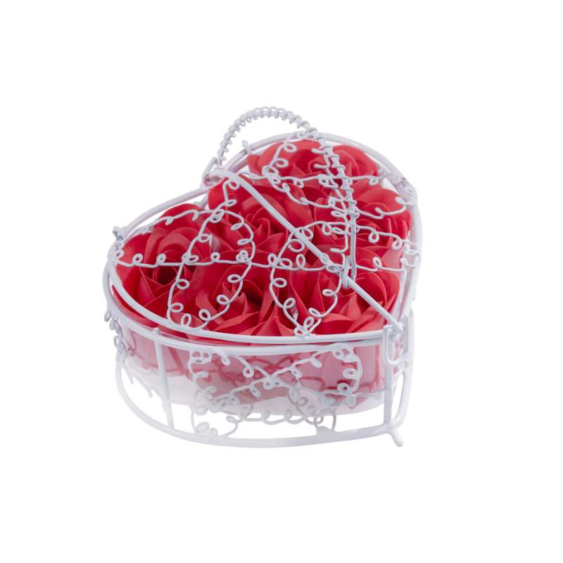 • 6 mydlanych róż w koszyczku w kształcie serca