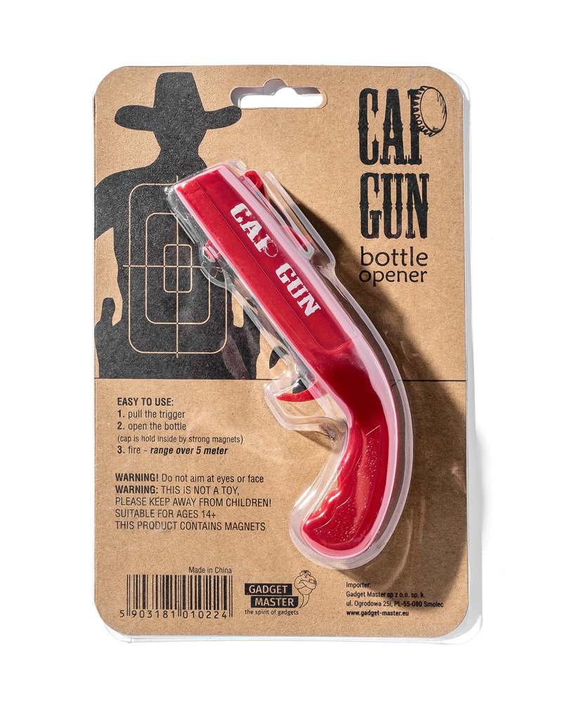 Nie tylko skutecznie otwiera, ale również strzela kapslami i to całkiem daleko :). Picie piwa nabiera z tym otwieraczem nowego wymiaru, możesz nie tylko delektować się ulubionym trunkiem, ale również zabawić się sam lub ze znajomymi i udowodnić swoją celność 😉