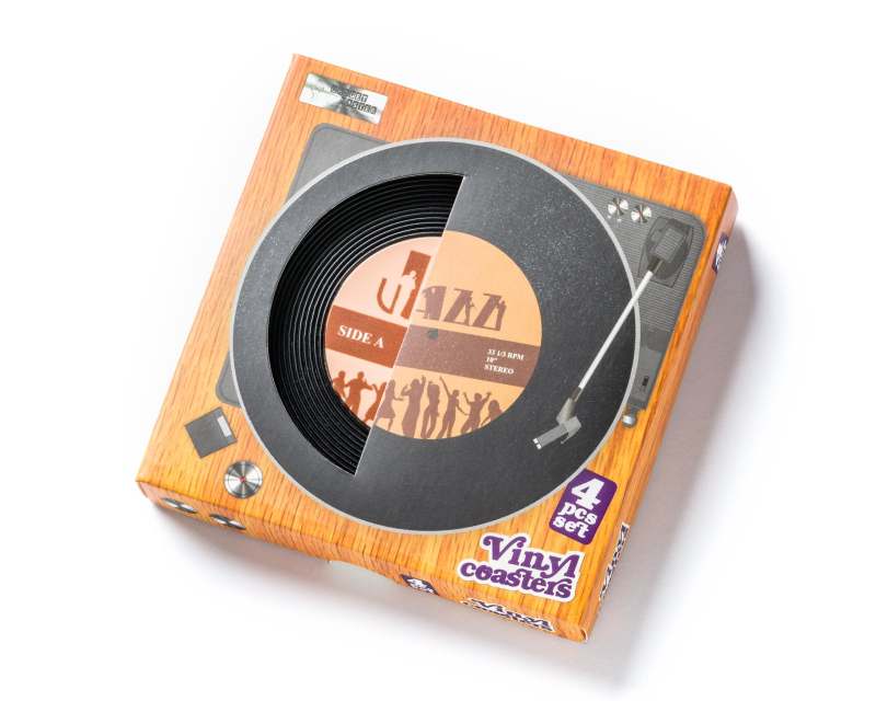 Nawet jeśli nie pamiętasz płyt winylowych, to nasze retro podstawki nawiązujące właśnie do nich mogą przypaść Ci do gustu. Wykonane z silikonu i dzięki temu odporne na temperaturę ochronią Twój stół, biurko czy blat przed niechcianymi plamami od kubka, szklanki czy kufla. Każda z czterech podstawek ma kolorowy nadruk imitujący te oryginalne ze czasów, gdy muzyka sączyła się spod igły zanurzonej w winylowych rowkach.