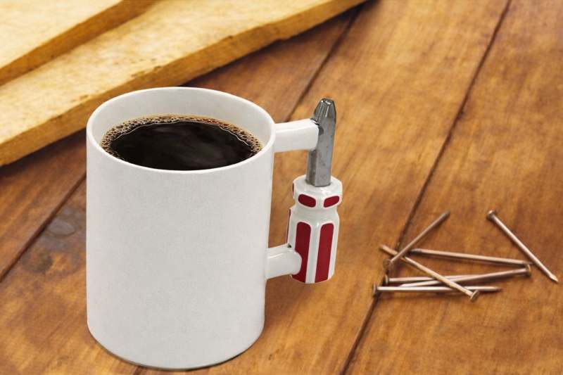 ☕ Kubek z uchwytem w kształcie śrubokręta – idealny do kawy w warsztacie czy biurze.