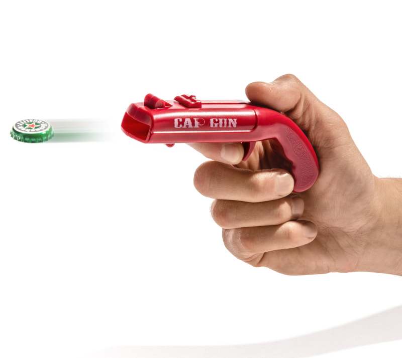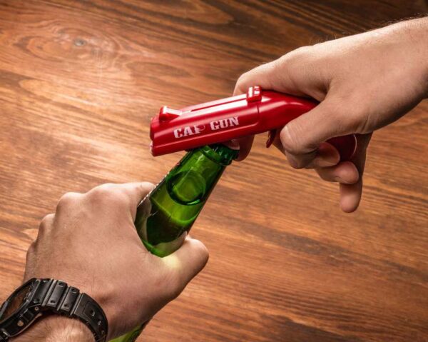 Otwieracz do piwa, którym można strzelać – otwierasz kapsel, celujesz i… pif-paf! Idealny gadżet do zabawy na spotkaniach ze znajomymi.