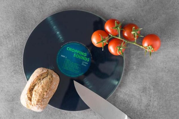 • deska do krojenia w kształcie płyty winylowej – szkło hartowane
