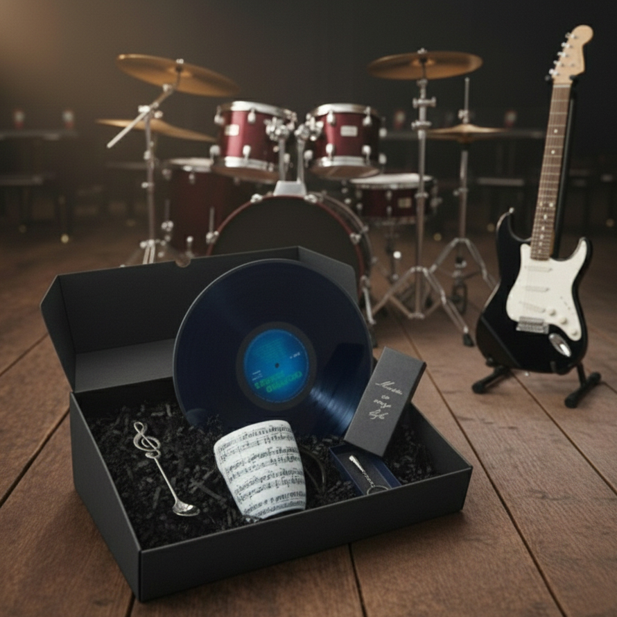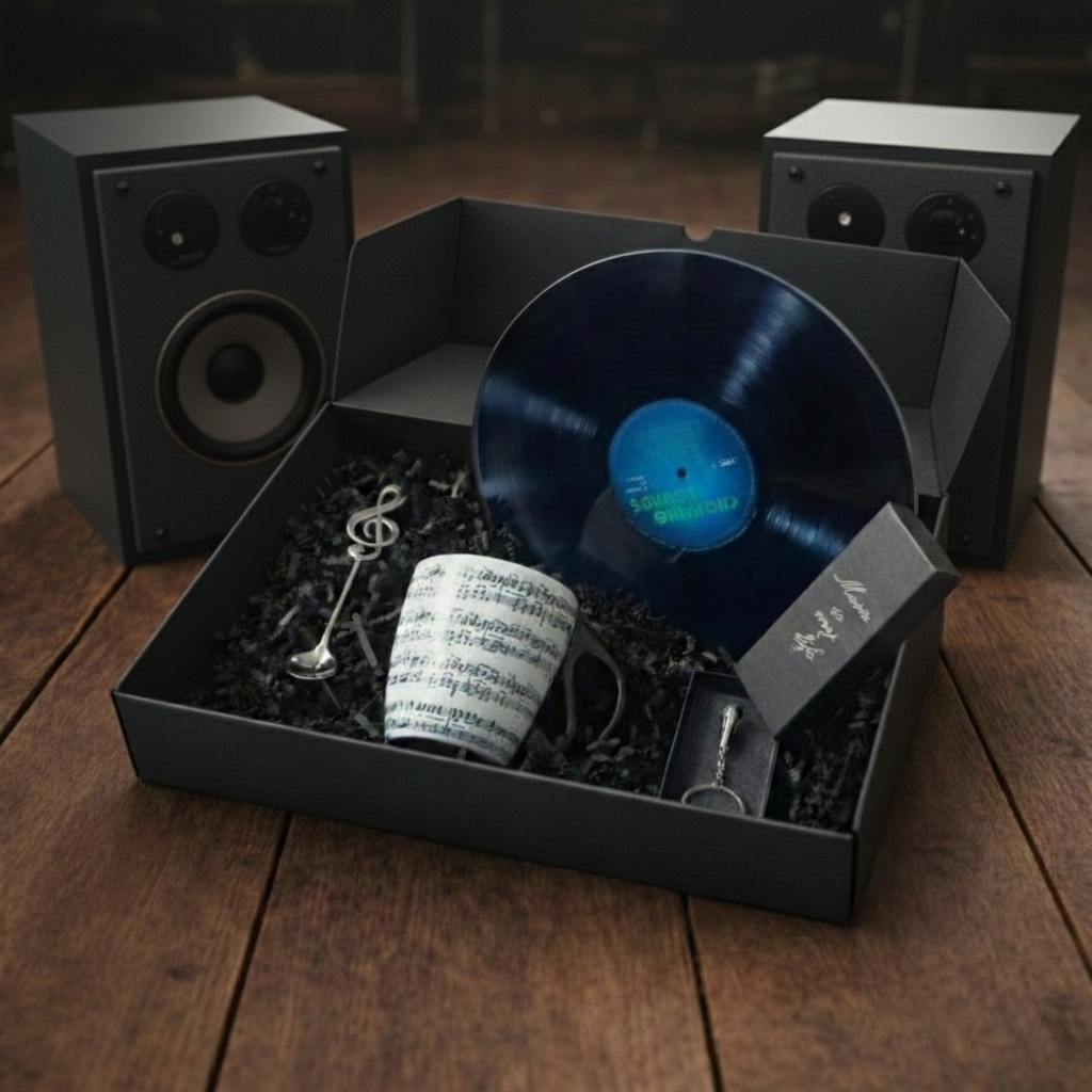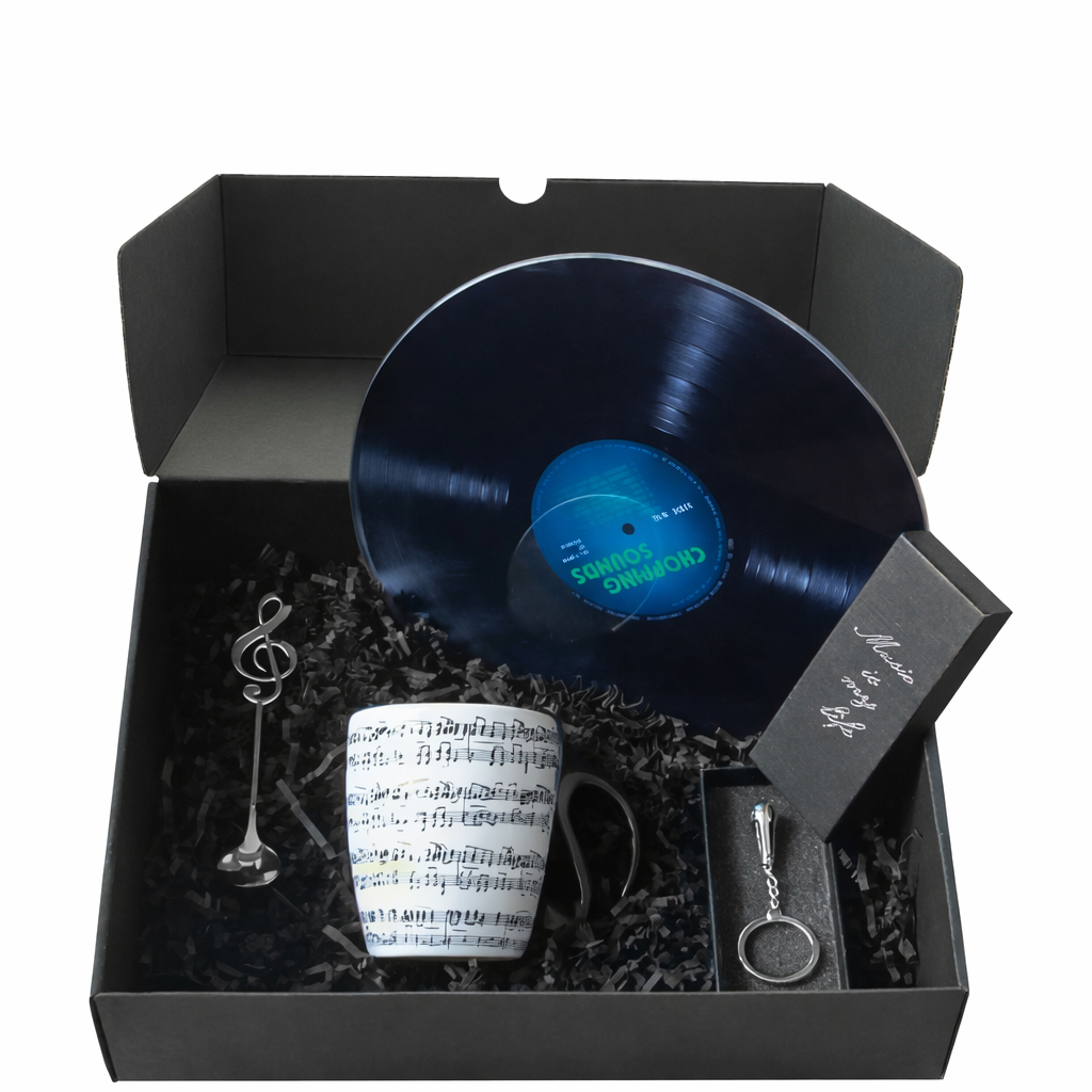 Jeśli szukasz prezentu, który nie fałszuje – oto on! W środku kubek z nutami, łyżeczka z kluczem wiolinowym, brelok w kształcie nuty i winylowy dodatek. Całość zamknięta w czarnym, eleganckim pudełku, gotowym do wręczenia. Bo przecież wiesz, że najlepsze prezenty grają w idealnym tempie. 🎁🎵